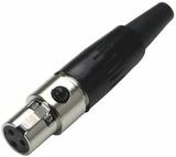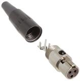 SOCKET, TINI, Q-G, IN-LINE, 3POLE; Connector Type:Mini XLR; Series:Tini Q-G; No. of Contacts:3; Gender:Receptacle; Connector Colour:Black; Contact Termination:Solder; Contact Plating:Silver; Connector Mounting:Cable; Connector Body Material:Metal; SVHC:No SVHC (20-Jun-2011); Body Diameter:10.5mm; Body Plating:Nickel; Cable Diameter Max:3mm; Colour:Black; Connector Mounting Orientation:Cable; Connector Type:Microphone; Contact Material:Copper Alloy, Silver Plated; Contact Plating:Silver; Contact Resistance:10mohm; Current Rating:5A; External Length / Height:51.7mm; Material:Brass, Nickel Plated; Mounting Type:Cable; No. of Poles:3; No. of Ways:3; Operating Temperature Max:85°C; Operating Temperature Min:-55°C; Termination Method:Solder; Voltage Rating VAC:125V; Working Voltage:125V