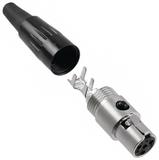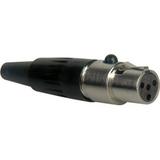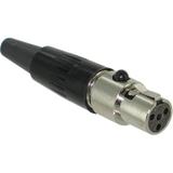 CONNECTOR, XLR, RECEPTACLE, 4POS; Connec; Connector Type:Mini XLR; Series:Tini Q-G; No. of Contacts:4; Gender:Receptacle; Connector Colour:Black; Contact Termination:Solder; Contact Plating:Silver; Connector Mounting:Cable; Connector Body Material:Metal; SVHC:No SVHC (20-Jun-2011); Body Diameter:10.5mm; Body Plating:Nickel; Cable Diameter Max:3mm; Colour:Black; Connector Mounting Orientation:Cable; Connector Type:Microphone; Contact Material:Copper Alloy, Silver Plated; Contact Plating:Silver; Contact Resistance:10mohm; Current Rating:5A; External Length / Height:48.3mm; Material:Brass, Nickel Plated; Mounting Type:Cable; No. of Poles:4; No. of Ways:4; Operating Temperature Max:85°C; Operating Temperature Min:-55°C; Termination Method:Solder; Voltage Rating VAC:125V; Working Voltage:125V
