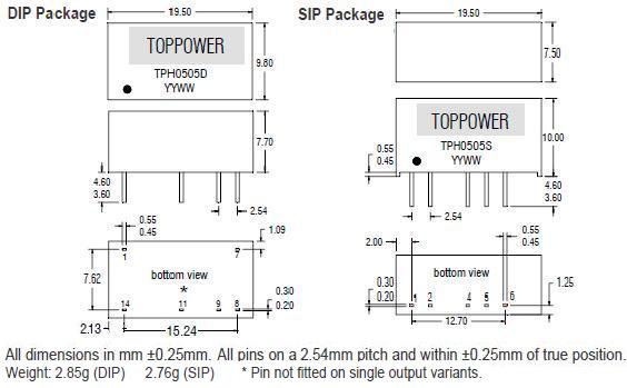 Модульный DC-DC преобразователь для монтажа на печатную плату. Материал корпуса соответствует стандарту UL 94V-0. Номинальная мощность 2 Вт. Удельная мощность 1,44 Вт/см³. Эл. прочность изоляции 3 кВ.