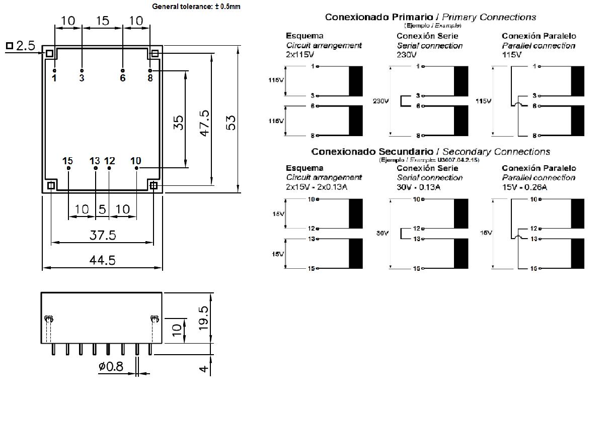 Низкопрофильный трансформатор для монтажа на печатную плату. Герметизация эпоксидной смолой; электрическая прочность изоляции 5000 В. Соответствует европейскому стандарту качества EN61558. Применяется в устройствах, выполненных с использованием печатных плат: в компьютерах и их периферии, промышленных контроллерах, телекоммуникационных приборах, медицинском оборудовании, в схемах питания ламп освещения, измерительной технике, бытовых приборах.