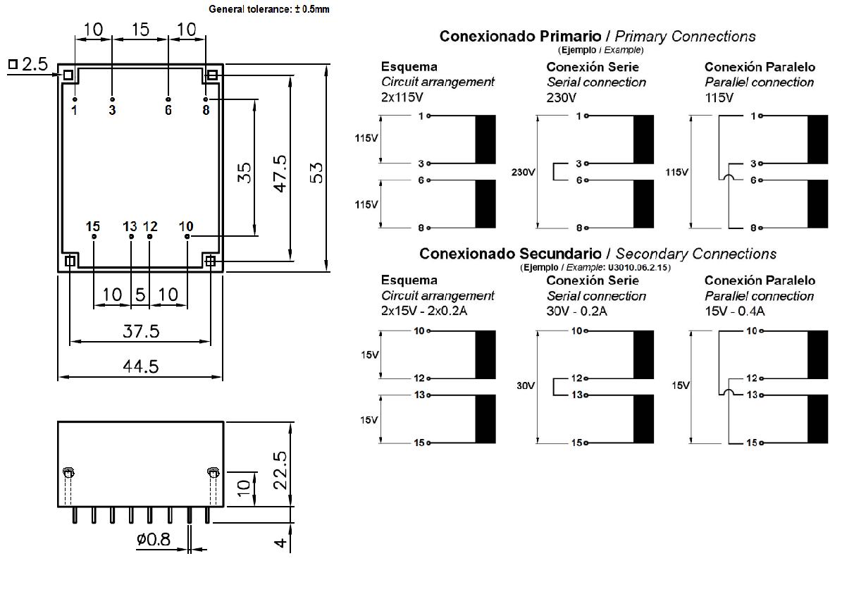 Низкопрофильный трансформатор для монтажа на печатную плату. Герметизация эпоксидной смолой; электрическая прочность изоляции 5000 В. Соответствует европейскому стандарту качества EN61558. Применяется в устройствах, выполненных с использованием печатных плат: в компьютерах и их периферии, промышленных контроллерах, телекоммуникационных приборах, медицинском оборудовании, в схемах питания ламп освещения, измерительной технике, бытовых приборах.