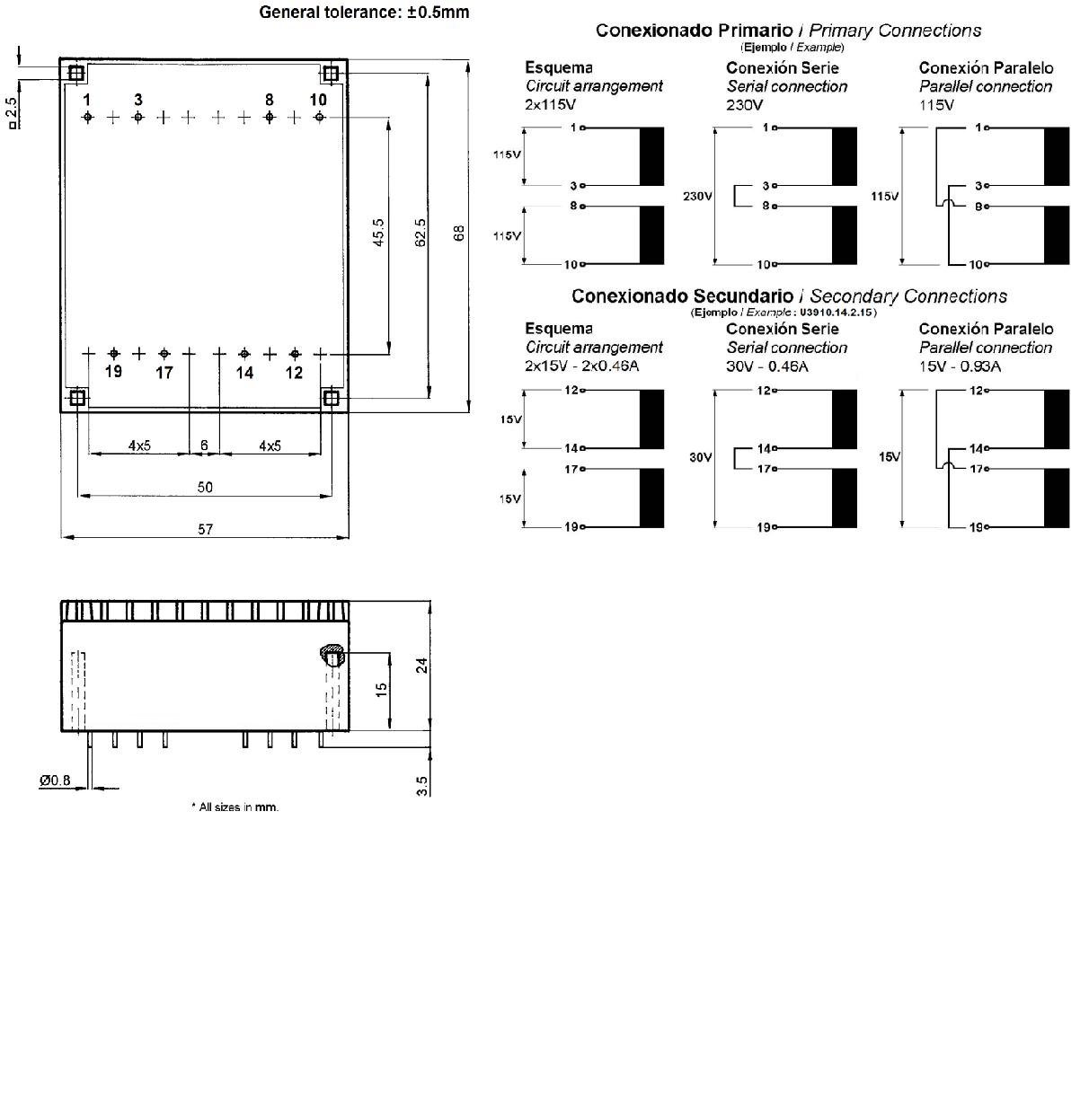 Низкопрофильный трансформатор для монтажа на печатную плату. Герметизация эпоксидной смолой; электрическая прочность изоляции 5000 В. Соответствует европейскому стандарту качества EN61558. Применяется в устройствах, выполненных с использованием печатных плат: в компьютерах и их периферии, промышленных контроллерах, телекоммуникационных приборах, медицинском оборудовании, в схемах питания ламп освещения, измерительной технике, бытовых приборах.