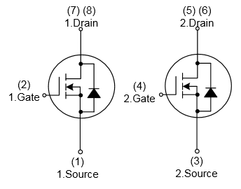 Сдвоенный N-канальный MOSFET транзистор в корпусе SOP-8. Безгалогеновое исполнение.