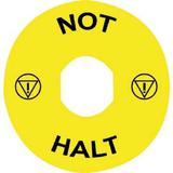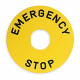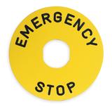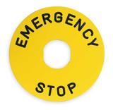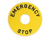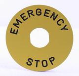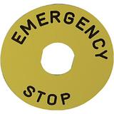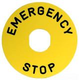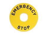 Schneider Electric Legend Plate (emergency Stop) black/yellow. More details: Legend Plate, Round, Legend Emergency Stop, For Use With 22mm Pushbuttons, Legend/background Color Black/yellow, Diameter 90mm